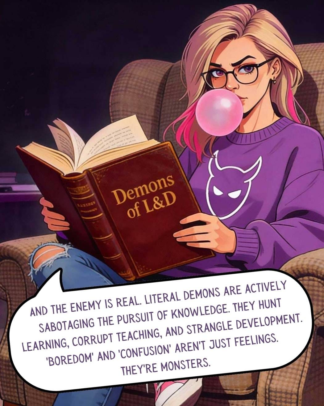 Each month, we follow Dee on her quest to defeat the demons of L&D as she uncovers the mystery of her mother's disappearance. Find out what monster she's up against in the latest issue, then read our articles to discover how we help her out.